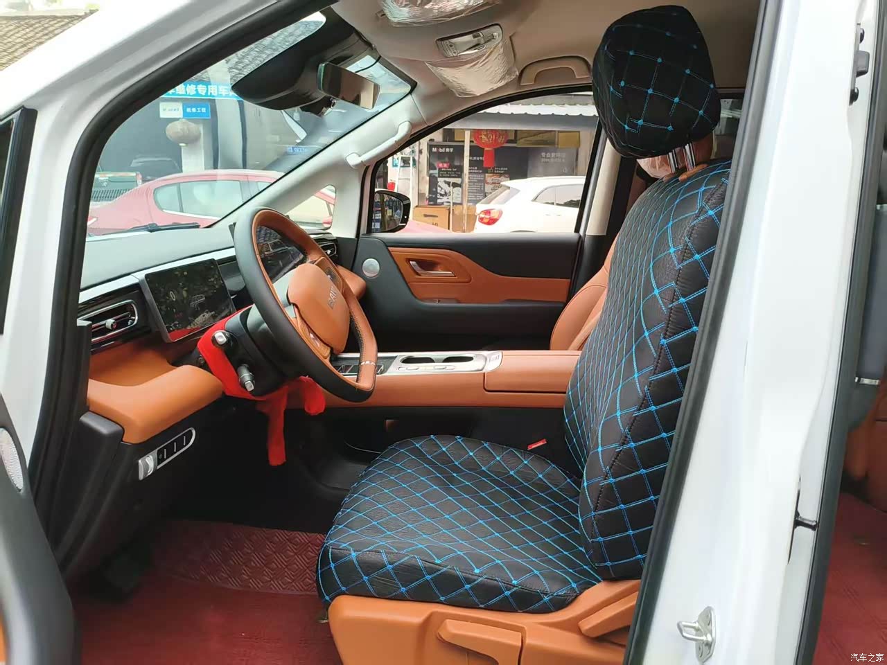 内饰配色特别的好看,车内很多地方都是软质的皮质包裹,摸上去很是舒适。