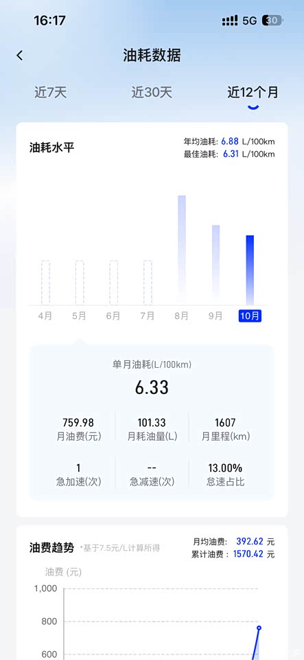 油耗还是很满意的,我开的还不多,增和油耗一起来8个左右。我城市快速路和市区开的多一点