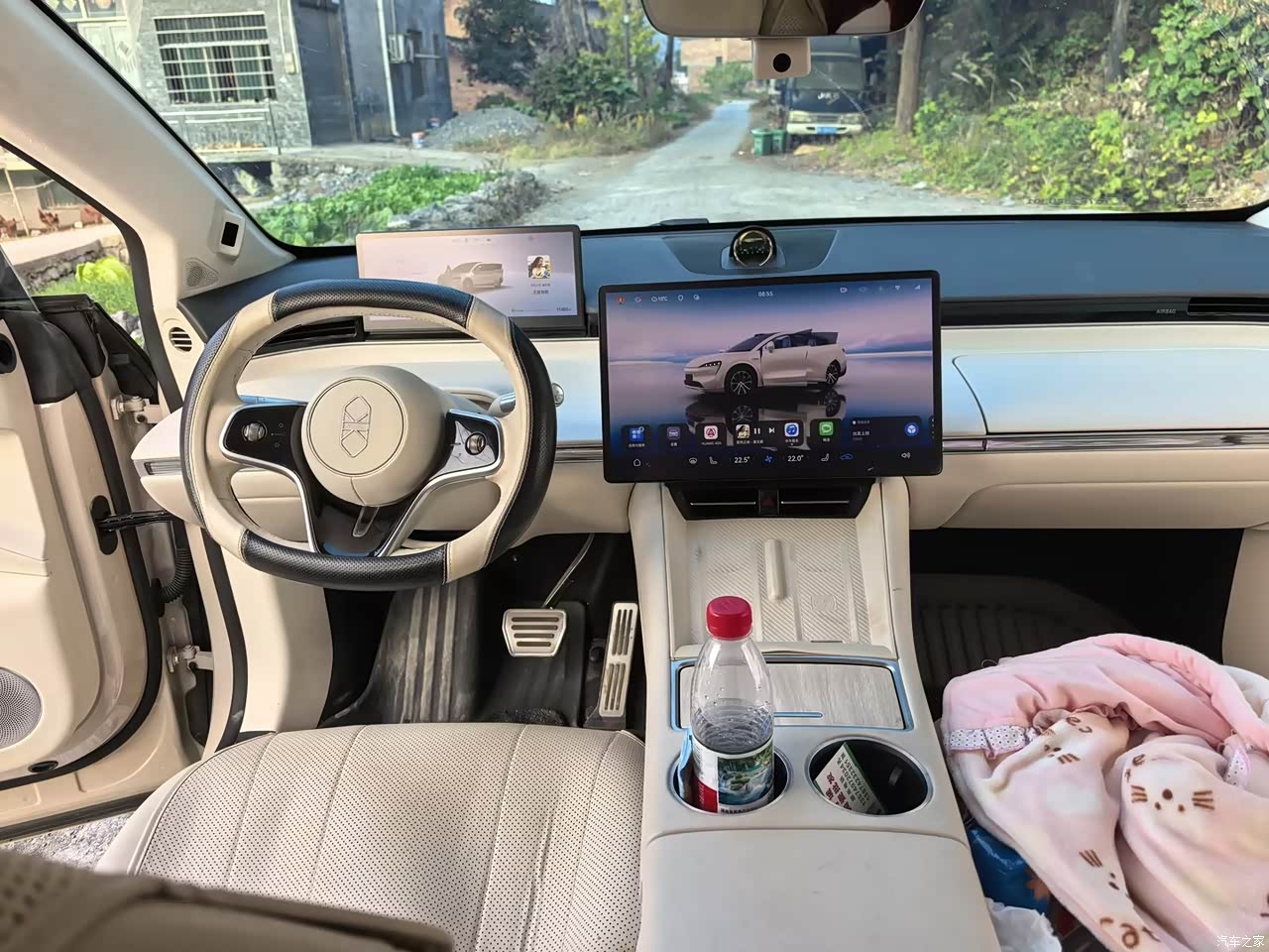 买这款车最关键和最吸引我的地方就是智能驾驶功能,之前开油车每次去远一点的地方心理压力是有点大的,智能驾驶功能可以缓解我这方面的焦虑,智能驾驶时比我开得标准多了,在前面有障碍物时,它的反应比我快很多。有一次我们在一条乡村小道上行驶,路两边都是有房屋的,突然有一个大叔推着一辆小三轮从路边冲到马路上,当时在我正前方大概200-300米的距离,我被他吓一跳根本反应不过来,自动驾驶马上做出紧急刹停的动作。避免了一场事故的发生,瞬间觉得很值很值,智界R7的智驾功能还是买得值了。 动力性能 完全能满足我们平时的需求,起步速度可以,操作也简单。爬山方面也很不错,像我之前那款小轿车每次开车上个山感觉费了老大劲了,开智界R7上同一座山,完全没有费劲的感觉,对比很明显。 空间和舒适度方面 空间大,后排可以坐得下4个130斤左右的人,正常坐3人是很宽松的,像平时我们带小孩出门,小孩在后排有比较大的活动空间。真皮沙发,软硬度适中,我们内饰颜色选择的是白沙杏,外饰颜色是暖星云,颜色搭配是很好看的,由于内饰颜色不太耐脏,我们搭配了合适的座椅套来尽量保护座椅的原色。前排和后排的座椅都有自动通风、自动按摩、自动加热的功能,可以缓解远途旅程疲劳并考虑了夏季和冬季不同时期的需求。副驾零重力座椅更是把舒服做到了度假的感觉,可以在上面躺平,舒舒服服小憩一会。主驾有一个特别的功能值得一提,当你打开门的时候,主驾座椅会自动往后移动让你轻松上车,当你坐上主驾后,座椅又会自动归位到你调好的驾车距离,当你开车准备下车的时候,座椅又会往后移动让你轻松下车,非常贴心。