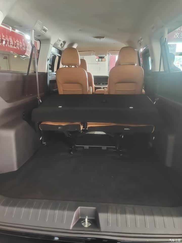 乘坐空间: 长轴距带来的空间提升是颠覆性的。我身高178cm,在调整好第一排后,第二排的腿部空间可以用“行政级”来形容,轻松翘起二郎腿。第二排独立座椅支持前后和靠背角度调节,舒适度极佳。最令人惊喜的是第三排,我坐进去后膝盖距离第二排靠背仍有一拳以上的余量,头部也不压抑,真正实现了7座都能舒适乘坐,而非“应急摆设”。 储物与载物空间: 在满员7座的状态下,后备箱依然拥有一个非常可观的进深,放下全车人的登机箱和数个背包绰绰有余。而当需要运送大件物品时,第三排座椅可以像第二排一样,整体向两侧悬挂翻折,形成一个巨大、平坦、规整的“货仓”。这个空间的灵活性对于我这样偶尔需要帮家里店面拉货,又经常需要接送客户和全家出游的用户来说,吸引力是致命的。