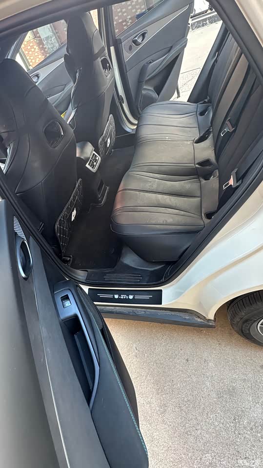 前排调整到驾驶坐姿后,后排腿部空间约有2拳,头部空间为4指。后排地台几乎纯平,中间乘客乘坐也较为舒适。