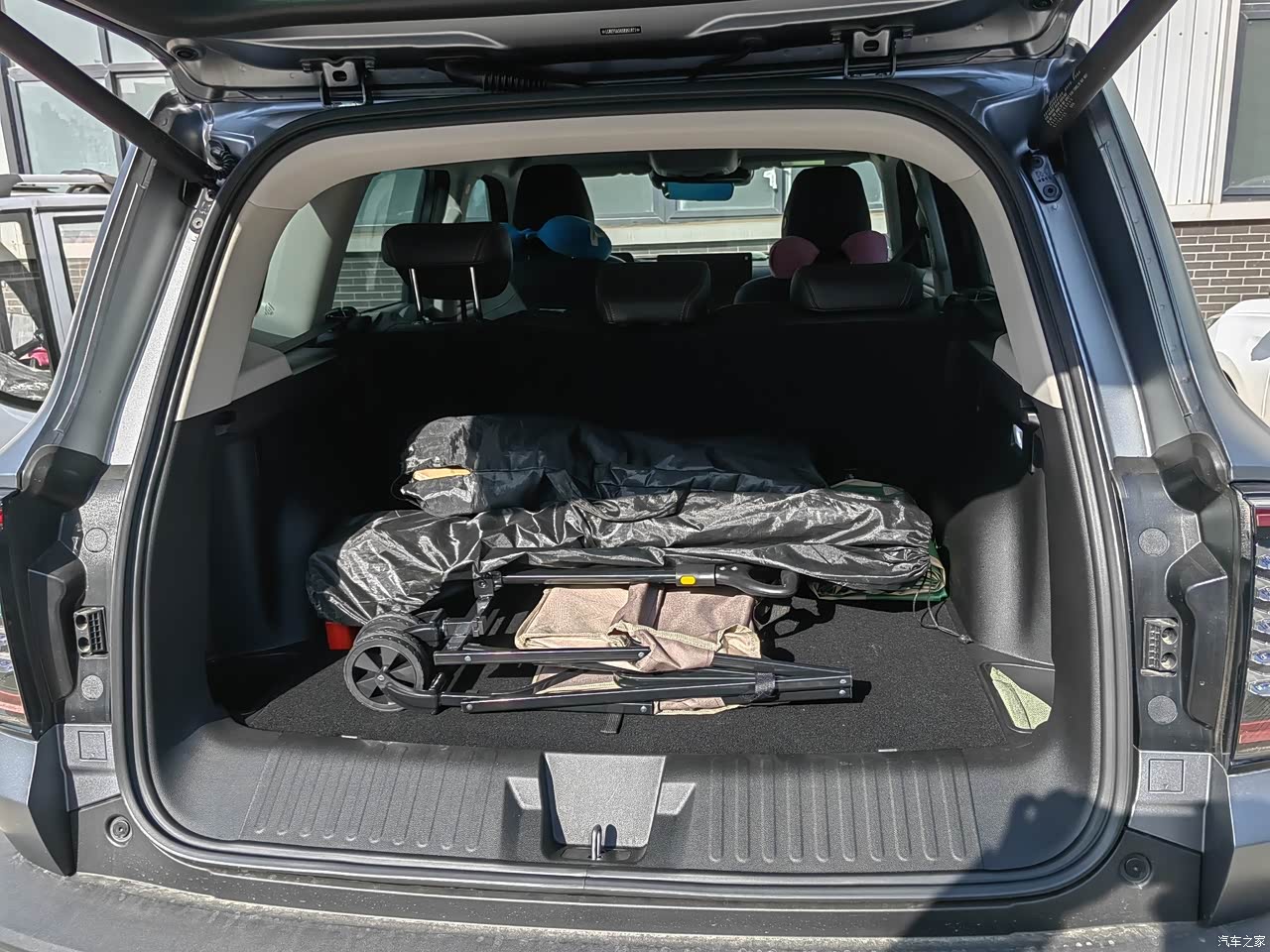 宽适座舱,舒展无界!哈弗大狗前排头部、腿部空间余量充足,身高185cm驾乘也不局促;后排横向宽度能轻松容纳三人,膝部距离前排座椅超两拳,跷二郎腿也自在,长途乘坐不憋闷。 2储物扩容,装下所有热爱!后备箱常规容积可观,放得下婴儿车、露营装备、行李箱等大件;放倒后排座椅后,瞬间解锁超大平层空间,露营睡袋、户外桌椅甚至小型冲浪板都能轻松收纳,生活与远方全装下。