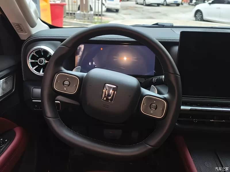 内饰配的红色,,好在按键都是实体的,开车的时候盲操作不费劲,无线充电位置也顺手,就是内饰红颜色容易脏,得勤擦。