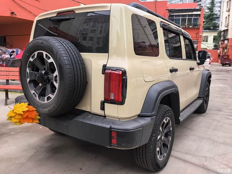方盒子造型太符合我审美了,硬派越野那股劲直接拿捏我,沙丘米色车漆阳光下还挺显大,停在小区里辨识度特别,就是车身太宽,老小区的窄车位得倒好几把才能进去。