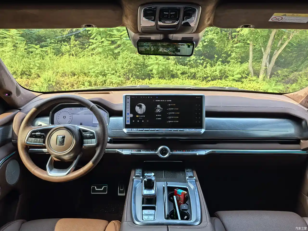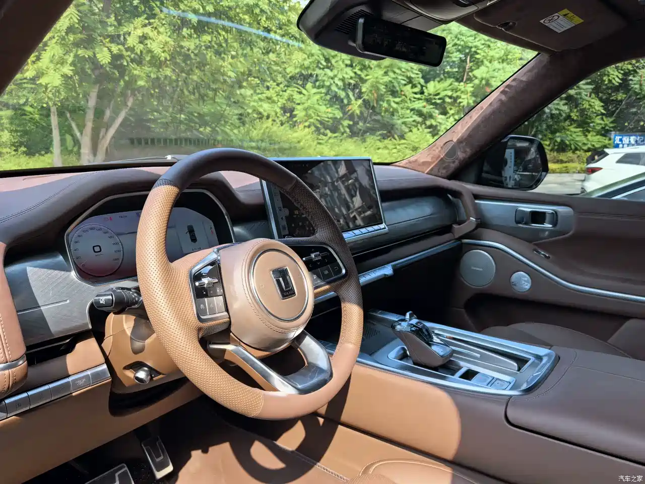 内饰跟家用车比呢,就显的很单调乏味了,但是跟越野车相比还是很有科技感的,毕竟有互联网大屏幕还有一些娱乐性的应用。