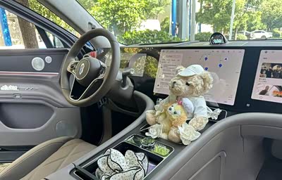 我这个Max版虽然是入门版,但豪华感和科技感依然在线。车内能摸到的地方大量使用了软性材质和皮质包裹,Nappa真皮座椅的触感细腻,缝线工艺精致。三块大屏显示清晰,就是边框有点宽。鸿蒙系统操作流畅度无可挑剔。另外,标配的6.8L压缩机冰箱太实用了,夏天喝冰饮,冬天可以喝热的,深受家人喜爱。智能隐私车窗支持多档调节,在阳光下可以变暗,保护隐私的同时也提升了隔热效果。内饰整体来说是一种温馨且高级的氛围。