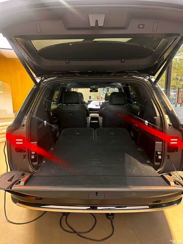 整体空间较宽敞,3169mm的轴距非常大,每一个位置的乘坐体验都非常好,2+2+2 六座的布局很合理,比7座布局更科学,主要是上下车比较便利。第二排旋转功能亮眼,可以与三后排形成会议空间,另外,第二排的座椅包裹性和支撑性非常好,除了对坐模式外还有其他模式可以选择,我就比较喜欢按摩模式 按摩的力度大、手法专业。第三排空间在同级别SUV中体验感也很好,乘坐时头部与腿部无压迫感。后备箱是天地门设计空间也蛮大的,还可以和第三排做一个联动,把第三排放倒后,后备箱空间可以翻倍。
