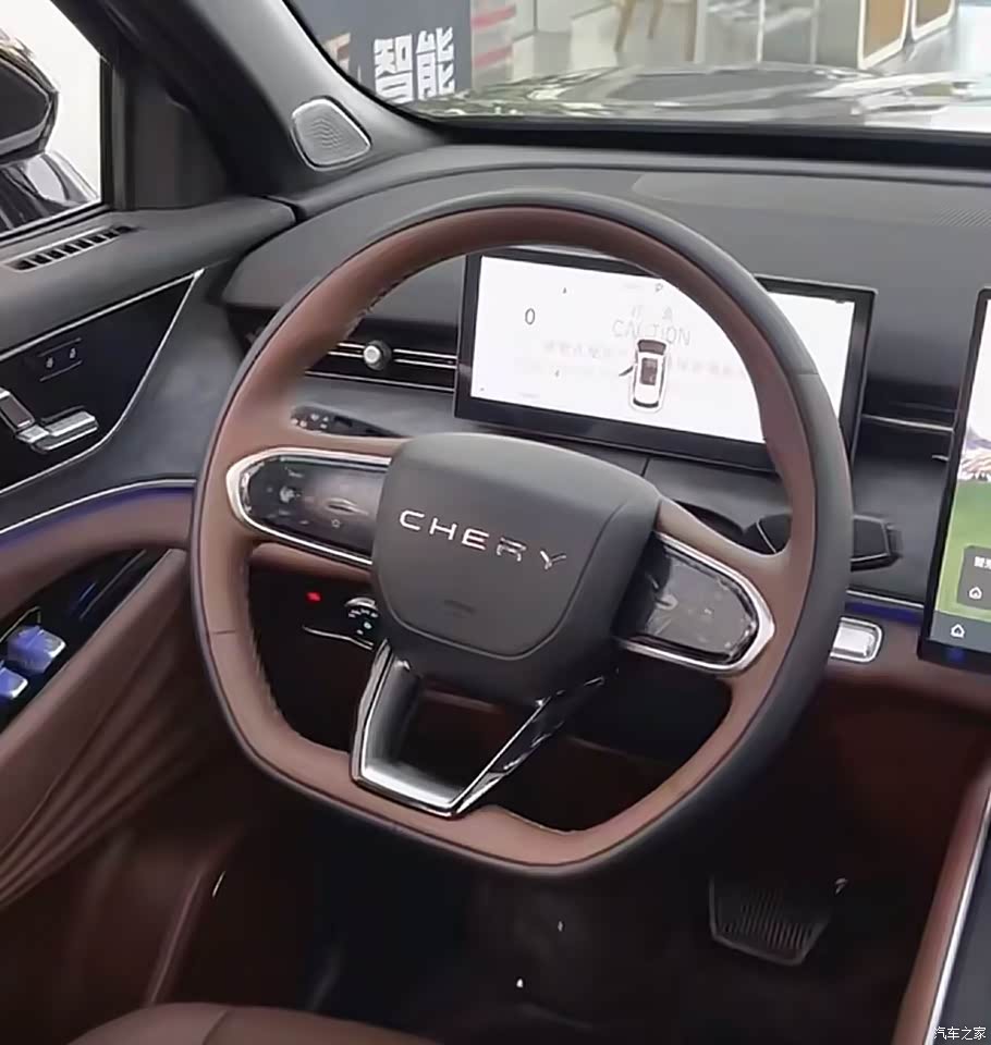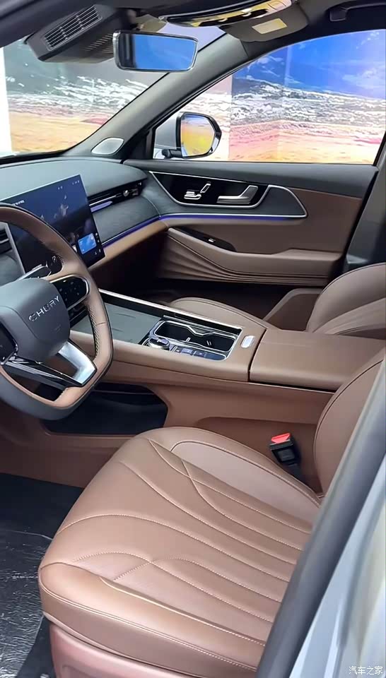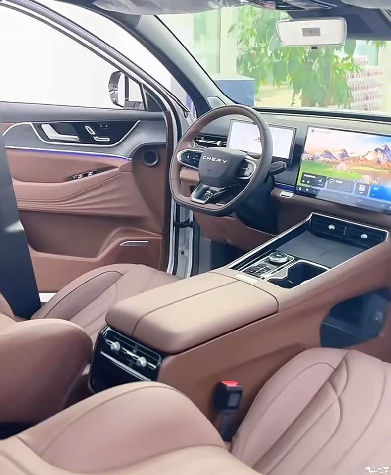 坐进车内,瑞虎9X的内饰还是挺豪华的,双悬浮屏幕布局取代了传统的双联屏,空调出风口采用了隐藏式设计,整体风格简洁又大方,三幅式平底方向盘,全液晶仪表盘和怀挡换挡机构,组成了人性化的驾驶区域,