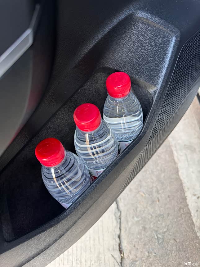 空间足够大,后排三拳,可以翘二郎腿,符合中型SUV的定位,但是座椅便硬,不够长,后排坐三个大人显拥挤,而且座椅边上微微翘起,硌屁股。储物空间表现优秀,门框里面可放下三四瓶水