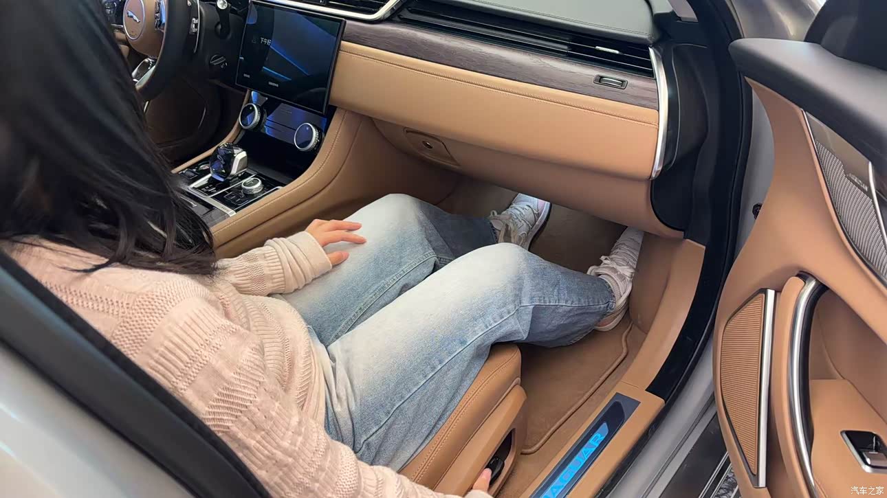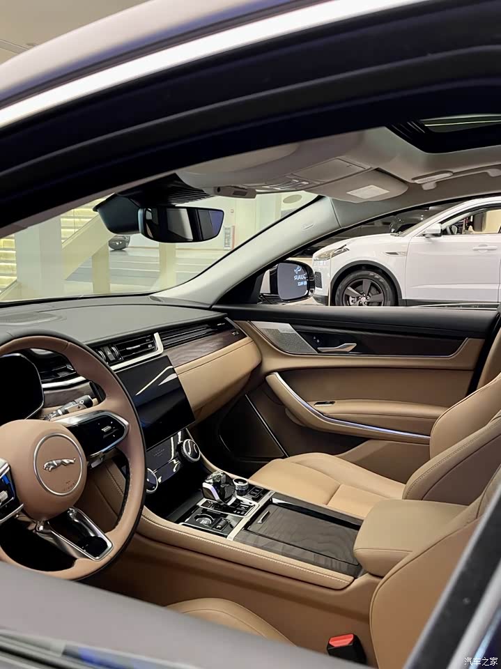 我们选的是英伦绿,优雅不撞款,回头率拉满 流线型车身线条流畅,没有多余的浮夸设计,却自带绅士格调。标志性的双L车灯辨识度超高。19英寸轮毂搭配修长车身比例,兼顾端庄与运动,不管是停在公司楼下还是商务接待,都显得有里有面。比起同级别常见的德系豪华车,捷豹的设计更有个性,这也是我放弃BBA的重要原因。缺点就是绿色不太耐脏