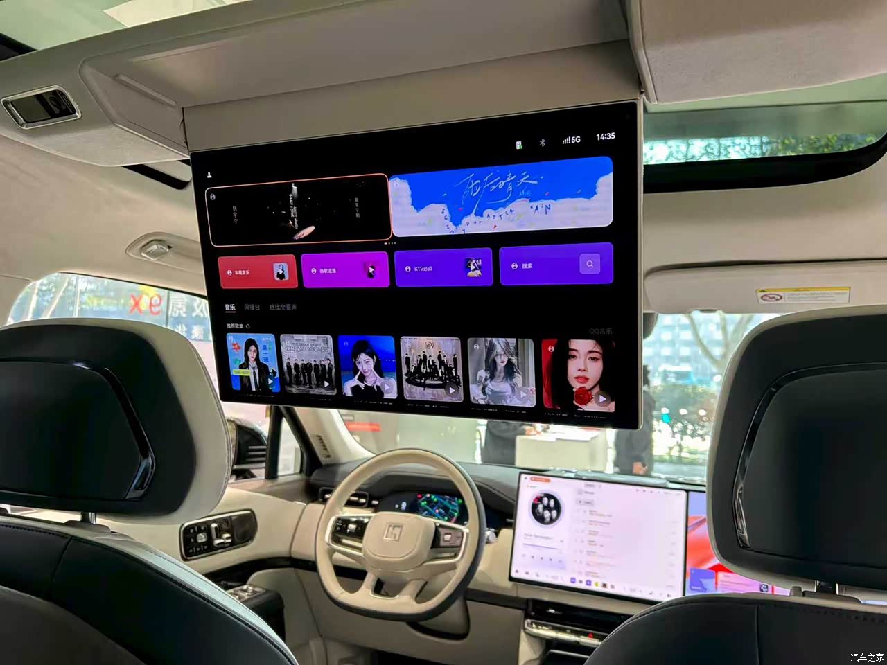 内饰豪华感足,完美融合科技豪华与传统经典,营造出媲美豪华轿车的座舱氛围。大面积亲肤皮质包裹搭配精致木质饰板,水晶按钮与物理按键的巧妙搭配,重新诠释了新豪华主义。飞翼屏很有科技感,滑移屏可灵活调节位置,方便后排乘客观看电视节目。