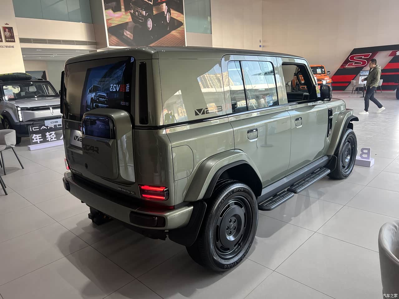 这个车的外观还可以,板板正正的,方盒子的造型深得我心,这个绿色也不大突兀,属于低调的绿色,价位也很适当,车子的细节还不错,越野车的元素把控的死死的,比如车子内驾驶模式旋钮上、车门上边都有越野车的图像,车内空调出风口设计的也很不错