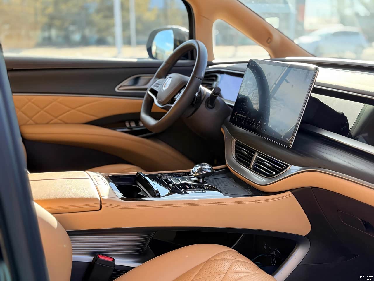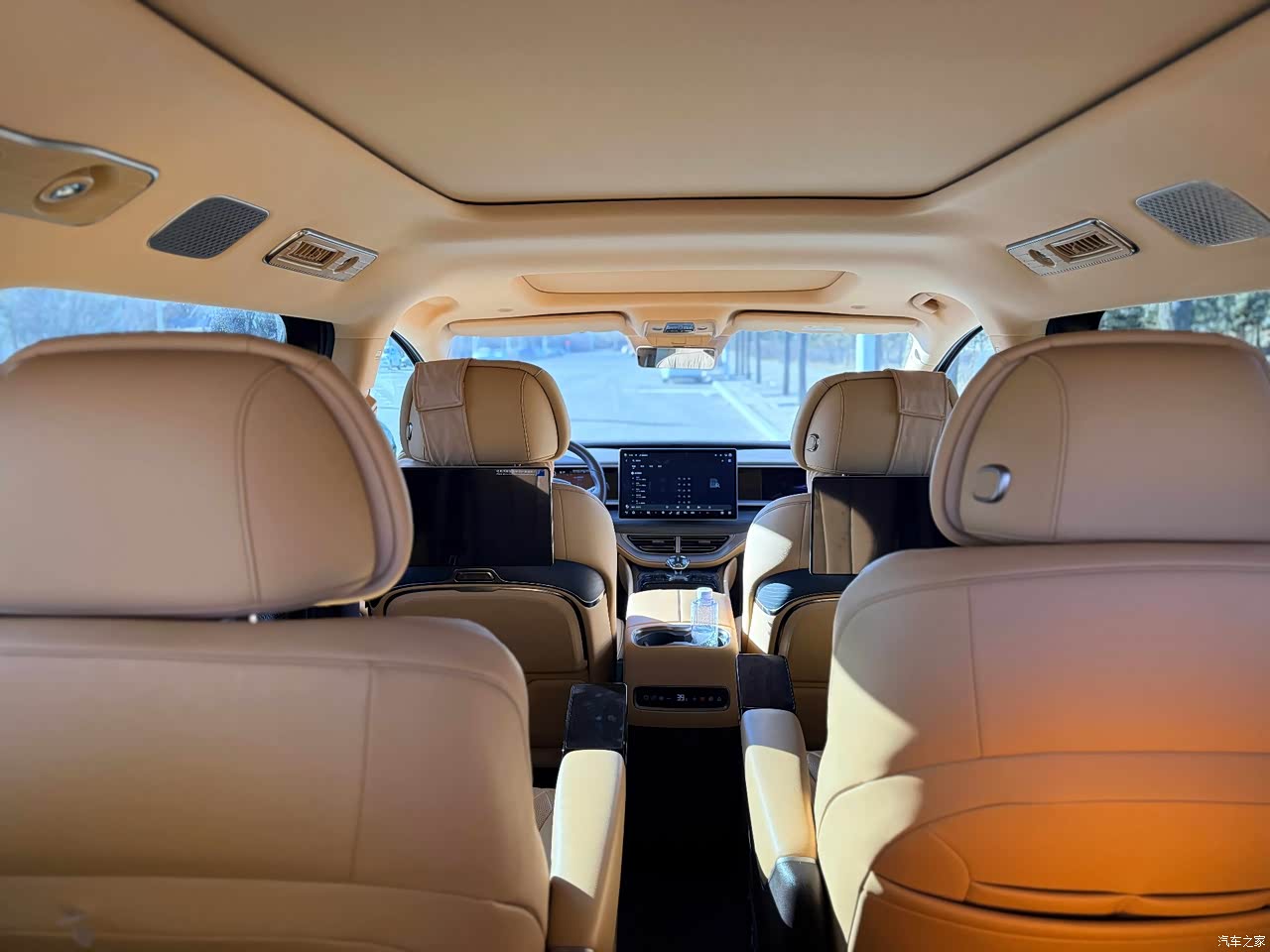 车看着挺大开起来比想象中灵活,起步挺轻快,混动系统动力输出平顺,油电切换的时候没什么感觉,不会顿挫。加速日常用够了,市区超车高速提速都从容,深踩油门能感觉到动力跟着来,不会没后劲。底盘调得偏舒服,悬挂有点韧性,过减速带或者路面小坑洼的时候,颠簸能过滤掉不少,方向盘力度刚好,低速的时候轻,高速上方向盘会变沉,开着稳不发飘,跑高速心里踏实。刹车也线性,基本上踩多少有多少。不过毕竟是这么大的MPV,要是想快开、快速变道,车身会有点晃,但平时家用、商务用也不会这么开,日常驾驶挺省心舒服的。