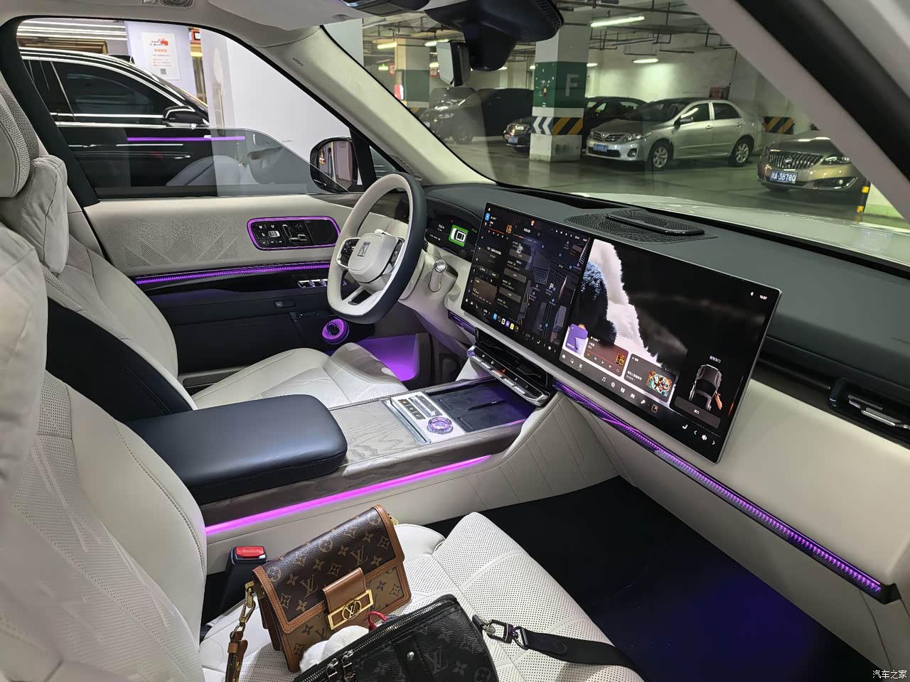 外观大气豪华,造型好看,车身比例协调,车头大气有很强的力量感,电镀轮毂光彩熠熠。 动力澎湃,加速能力非常强,这个重量和体型的车,能带来4秒左右的加速能力。 而且感觉它像是一台双重性格的大玩具、既能提供如磁悬浮列车般平稳、安静的豪华舒适感,又能瞬间化身性能猛兽,双电机释放出的狂暴动力和精准操控,带来令人上瘾的人车合一感,这种双重性格完美满足了我一车多用的使用场景。 底盘扎实,双腔空气悬架 + 双阀 CDC 的组合,既隔绝了城市路面的颠簸,又能在高速过弯时保持扎实支撑。