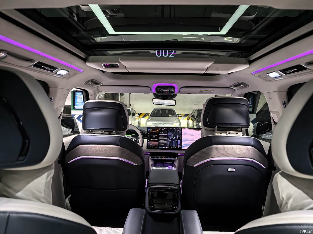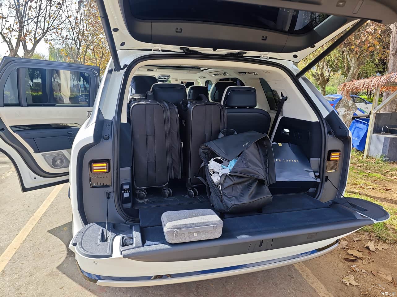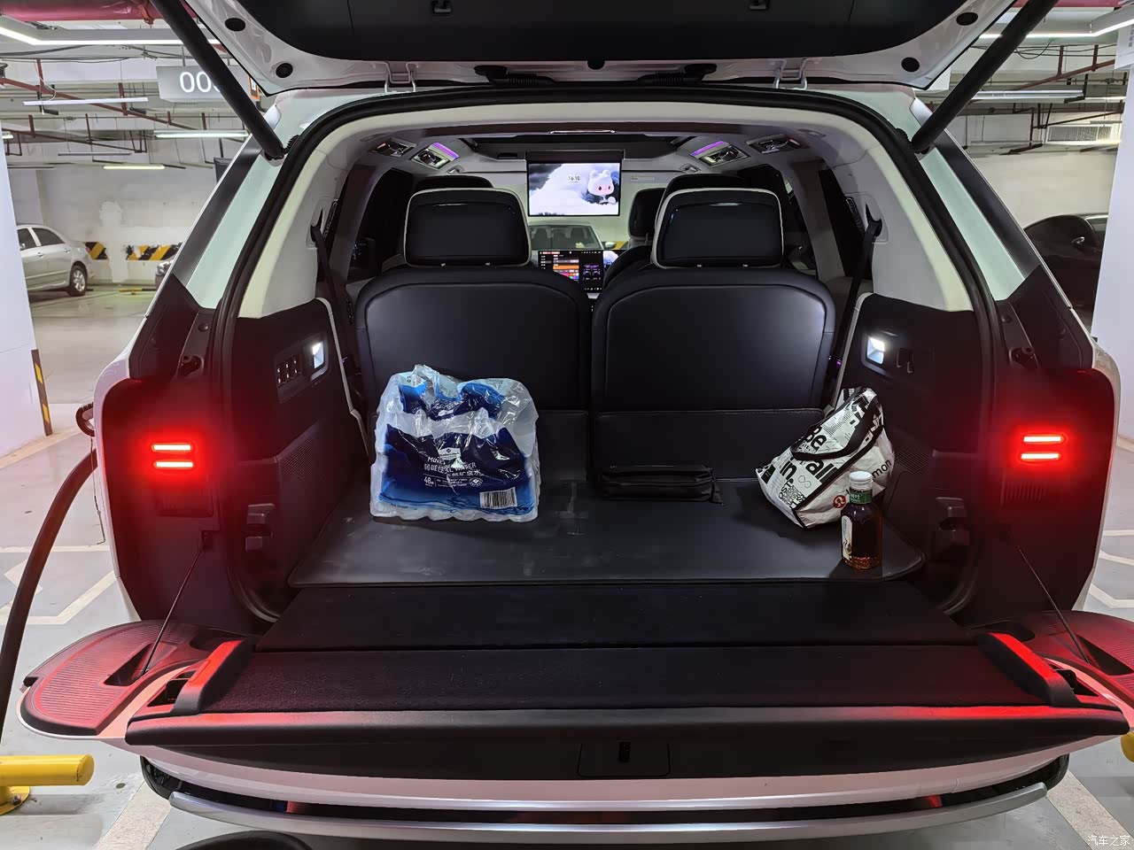 车内空间利用率高,家里人即使六个人坐也很宽敞,后备箱空间同级别最大,天地尾门使用场景多,极其便利。5500 公里里试过满载六人的场景(三位成年人 + 两位老人 + 一个儿童),每个人都能拥有宽敞坐姿,成年人坐第三排仍有不错的体验感。后排智慧屏可折叠可移动、翻转角度自由调节,孩子乘车时能看动画,商务接待时可投屏展示资料,偶尔还能当移动办公屏,5000 多公里用下来,这个设计的使用率超高,爆赞。还有超大的可开启的防晒的带遮阳帘的远古科技——天窗!