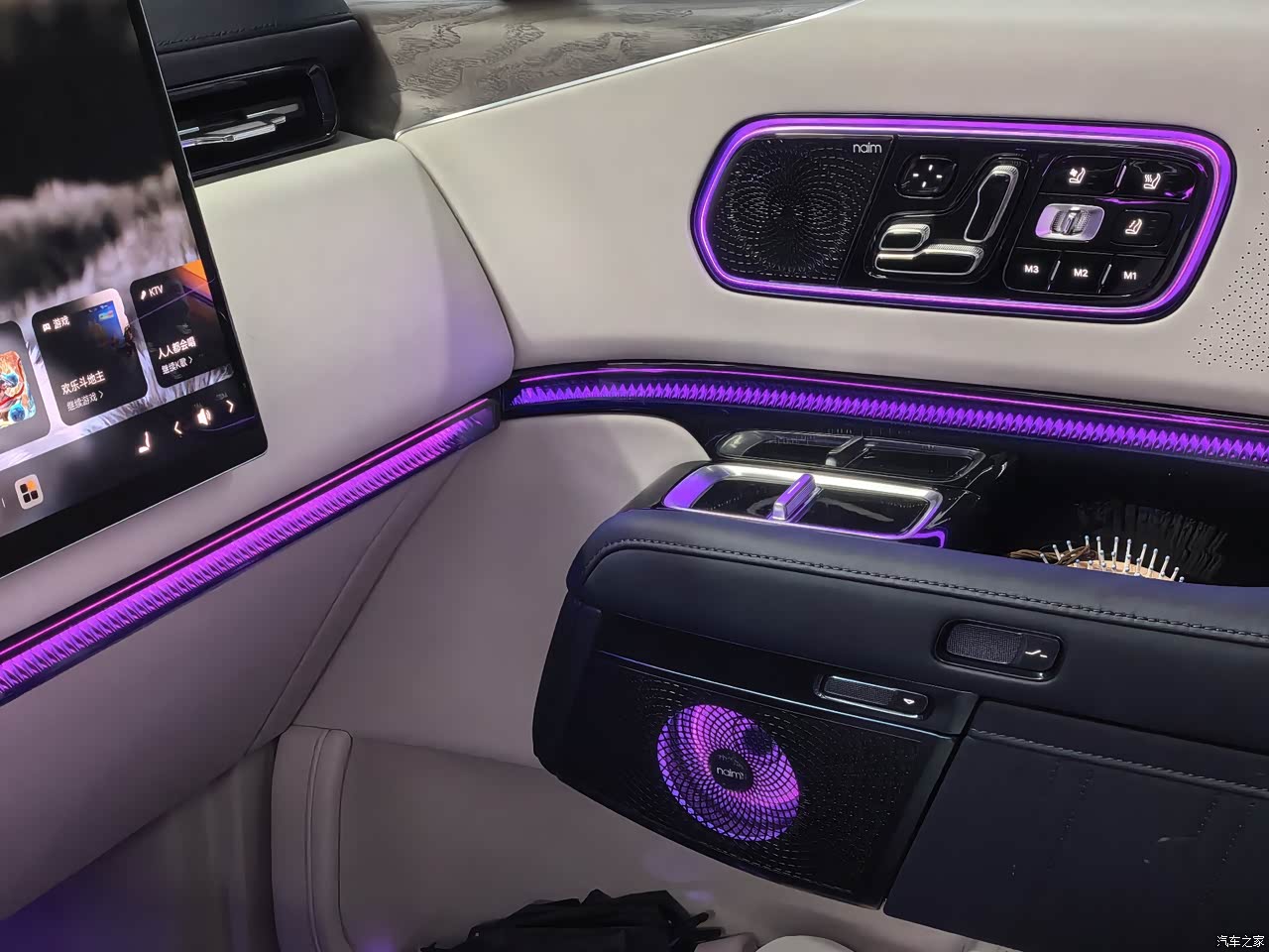 内饰豪华感足,设计高级豪华,用料扎实,全车能触碰到的几乎都是柔软的真皮,还有大量的高级细腻的实木点缀,顶部满满覆盖了超级柔软的超纤绒顶棚。白内饰搭配和谐,没有异味,家里孕妇和孩子可以放心乘坐。