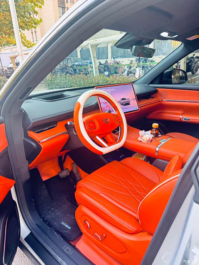 外观的话很大气,很简约,然后我订购的是乐华银的颜色,橙色的内饰,很时尚在线
