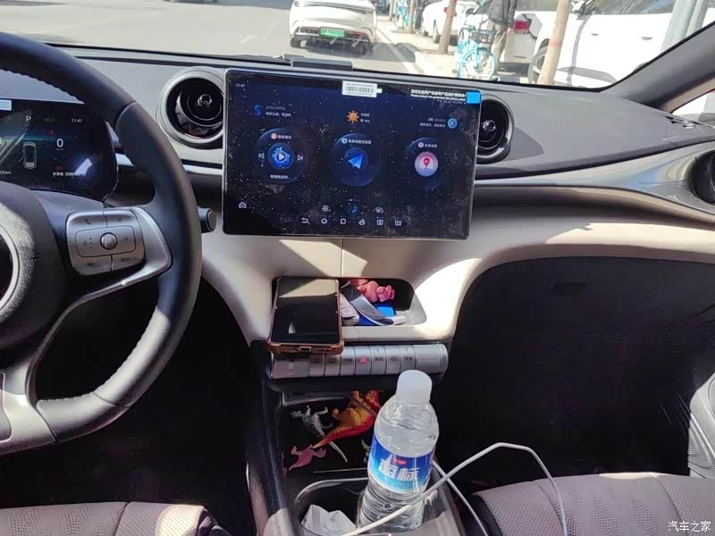 塑料感是真强,不过活力版是低配也能理解。中控屏不大但够用,就是自带导航版本太老,听歌只能连蓝牙。座椅仿皮的还可以比织物强,颜色奶茶棕我老婆比较喜欢那就够了。