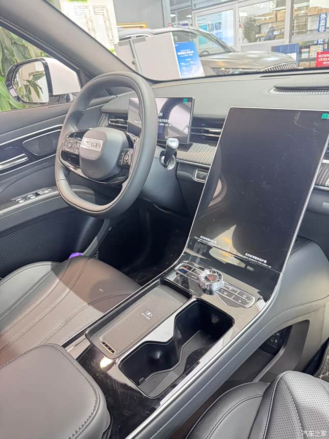 门板、中控台等部位大面积覆盖软质材料,缝线做工精细,触感较好,相比老款有明显进步。 怀挡设计让中央通道有了双层储物空间,还集成了50W无线快充与实体按键,方便实用。