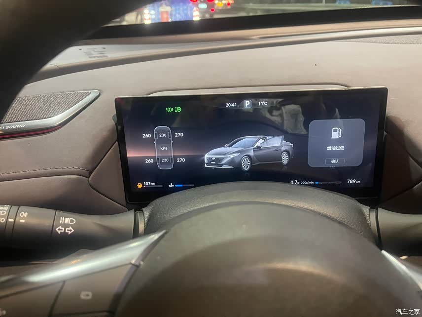 内饰的中控台屏幕很大,但是晚上开车的时候中控台会看不清楚,感觉氛围灯有点暗了,挂挡的时候会看不清楚,需要自己注意一下。