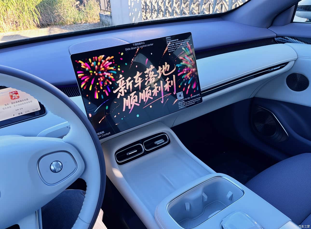 【空间内饰】 百分之90的得房率不是盖的,空间确实很大,坐在后排可以翘二郎腿,尝试了后排的角度调节,可以调到一个非常舒服的角度,坐着一点都不累。此外,我的舒享u版本还有拍一拍自动弹开前备箱,非常方便,前备箱放海鲜、榴莲就不用怕串味了。后备箱是掀背的,开口非常大,放大件的东西也非常方便,而且后排可以放平(带有15度的斜坡),以后出去露营可以直接睡车上啦。内饰方面我选的是紫白色搭配,紫白色内饰真的好好看,晚上搭配上氛围灯,真的很有感觉。