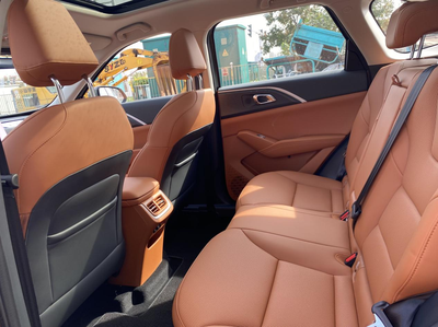 内饰很居家,氛围很好。座椅的皮质摸着很软,坐着也舒服。怀挡设计让中控台省出好大一块地方,手机、钱包、水杯、钥匙全有地方放,好评。