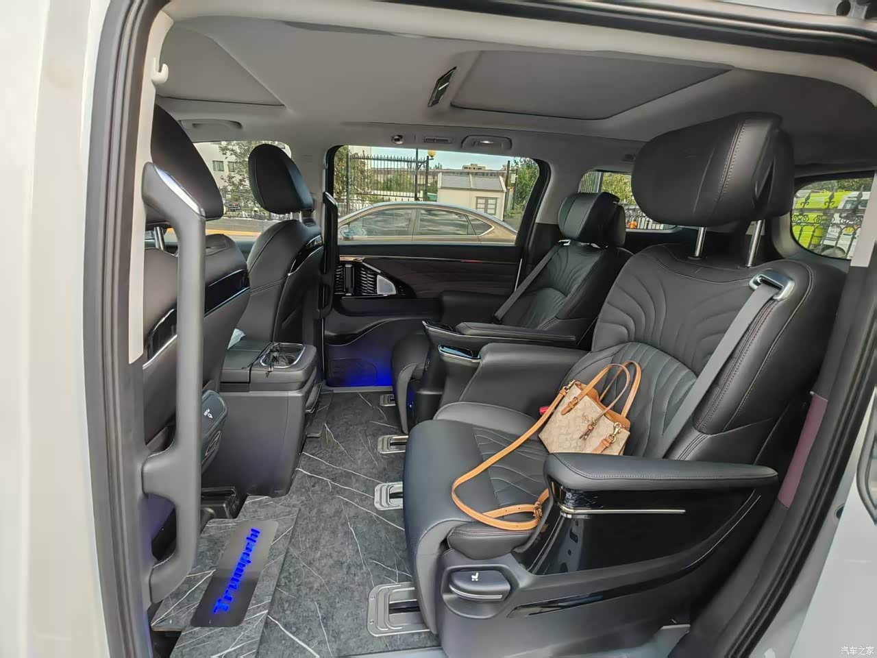我身高163,坐在第一排头部很多拳,腿部空间也有很大富裕,非常宽阔。第二排上去简直就是客厅沙发的感觉,第一排调整好开车的距离后,第二排即使调到前面都不觉得拥挤。调到舒适的中间位置,腿部可以随便变换,头部空间也是好几拳。第三排座椅成年人坐也不会拥挤就和正常5坐车那种距离差不多。车内储物空间,前排档把下面有个大的镂空可以放好多物品,中间有水杯架,有大抽屉可以放物品,车门两侧均有放置水杯地方。前排和第二排都有充电口。后备箱储物能力,都坐满人员的情况下可放置行李箱和大提包没问题。如果第三排不坐人的话还可以折叠起来,放置空间更大。