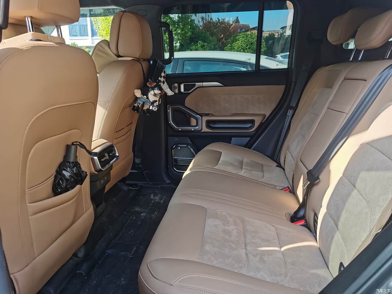 旅行者内饰既有越野、运动的一面,又有年轻时尚的感觉,显得高端大气。座椅采用皮质和翻毛皮混搭的材质,头枕宽大且厚,包裹性、舒适性好;顶棚是麂皮绒材质,触感佳;前台和车门内侧均是软质包裹,没有硬塑料的廉价感;方型方向盘别致有特色,外裹皮质,手感好;中控台配有一块15.6英寸的高清大屏,10.25英寸的全液晶仪表盘,视觉大气且舒适;四门侧上方、中控台下方均配有抓手,方便上下车及颠簸路段把稳坐姿;门内侧车把手是金属质感、铆钉工艺,与硬派匹配。我选用棕色座椅+黑色顶棚,颜色相溶不违和。