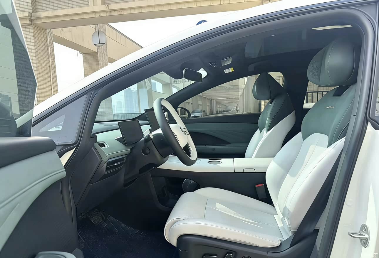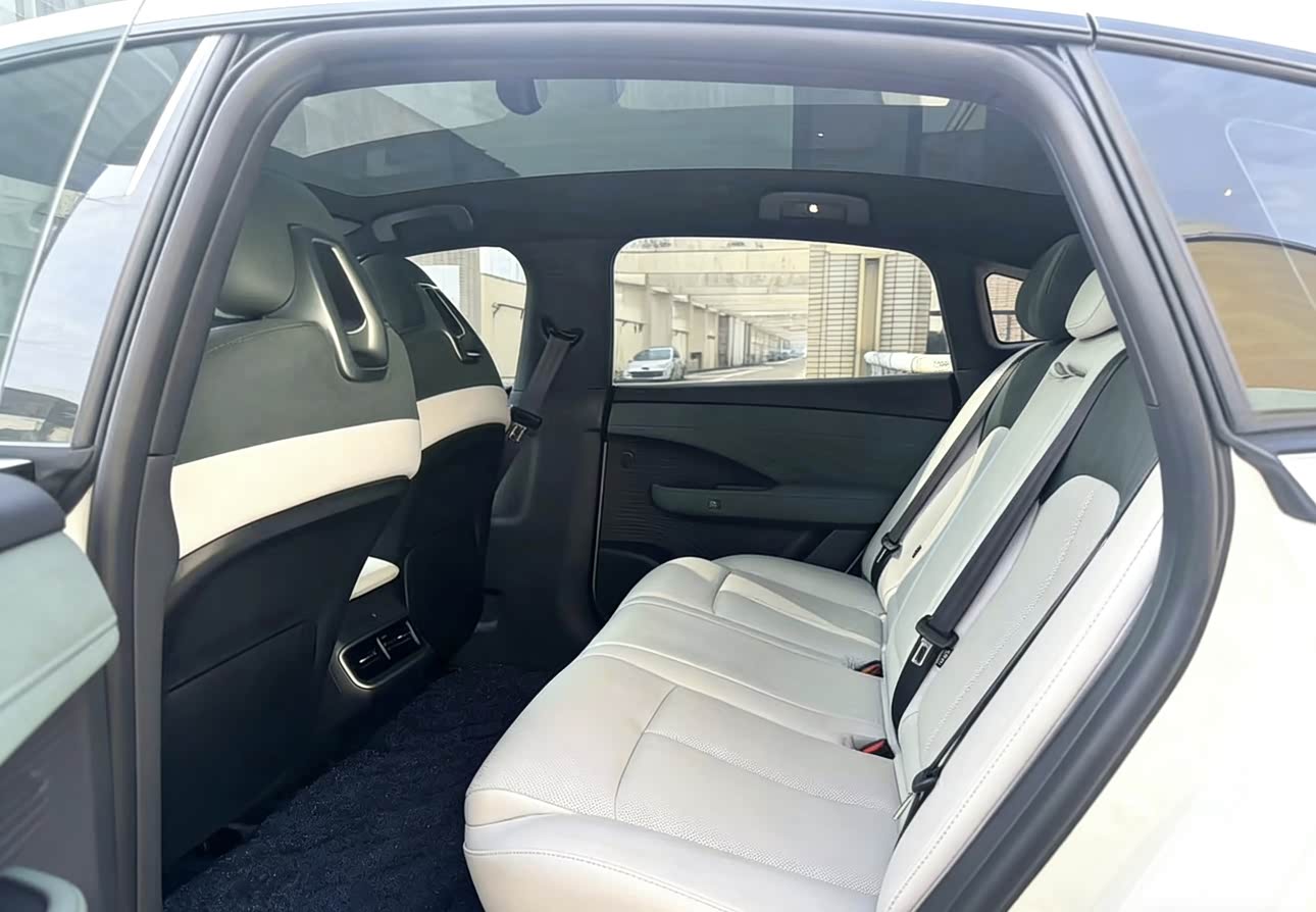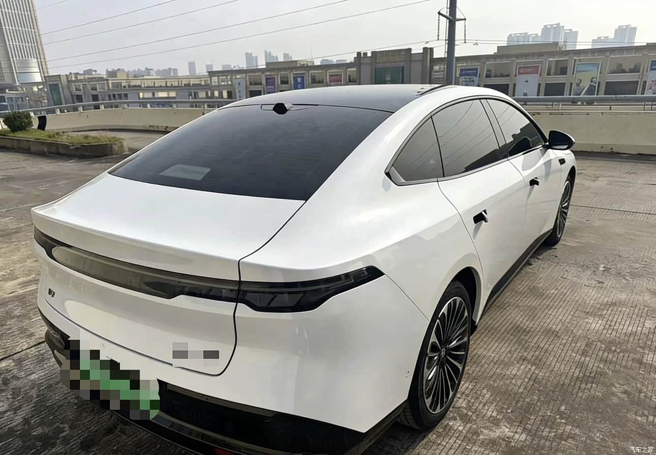 我选的是白色,实车看起来很有质感,在阳光下有淡淡的金属光泽。前脸是新能源车流行的封闭式设计,车身侧面线条流畅,隐藏式门把手不仅降低了风阻,也让侧面看起来更整洁。轮毂造型动感,和整车风格很搭。不过,为了这个溜背造型,车尾后备箱的开口位置有点高,放大件行李时会稍微费点劲。