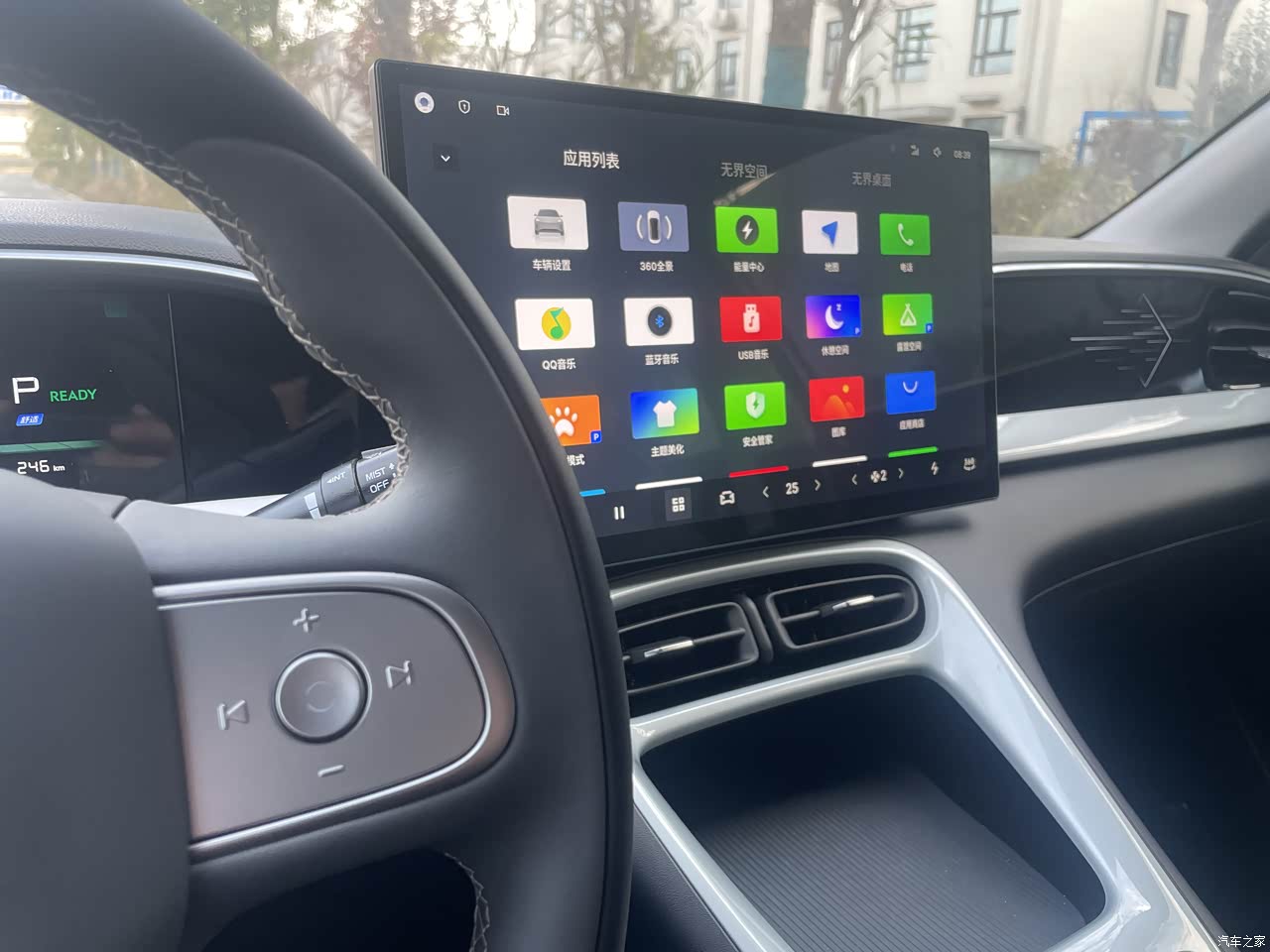 内饰就是实用,中控大屏很吸睛,界面不仅清晰操作也流畅,基本不用翻实体按键。座椅是仿皮材质,不过填充还比较实在,坐着感觉很舒服,长时间坐了也不会觉得很累。整体的硬塑料确实拉低了点质感,不用仿皮也可以使用些搪塑的材质(不知道是不是这个词,就是按着会软的那种材质),不过考虑到价位,也算是合理。