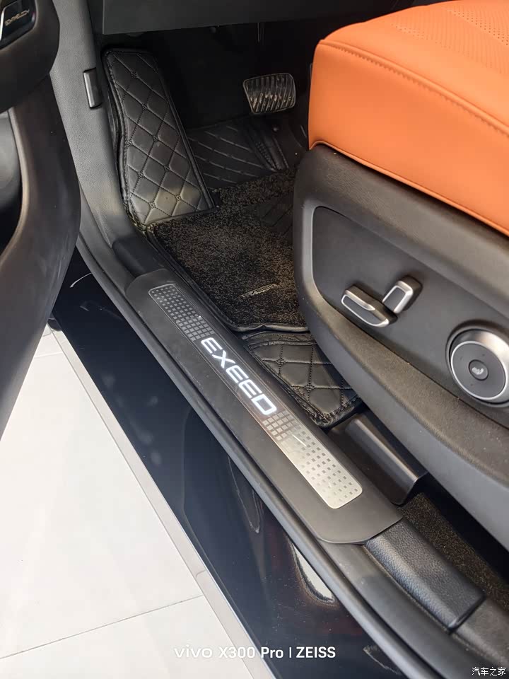 内饰配色是橙色与黑色搭配,属于现在新能源车主流的设计配色。