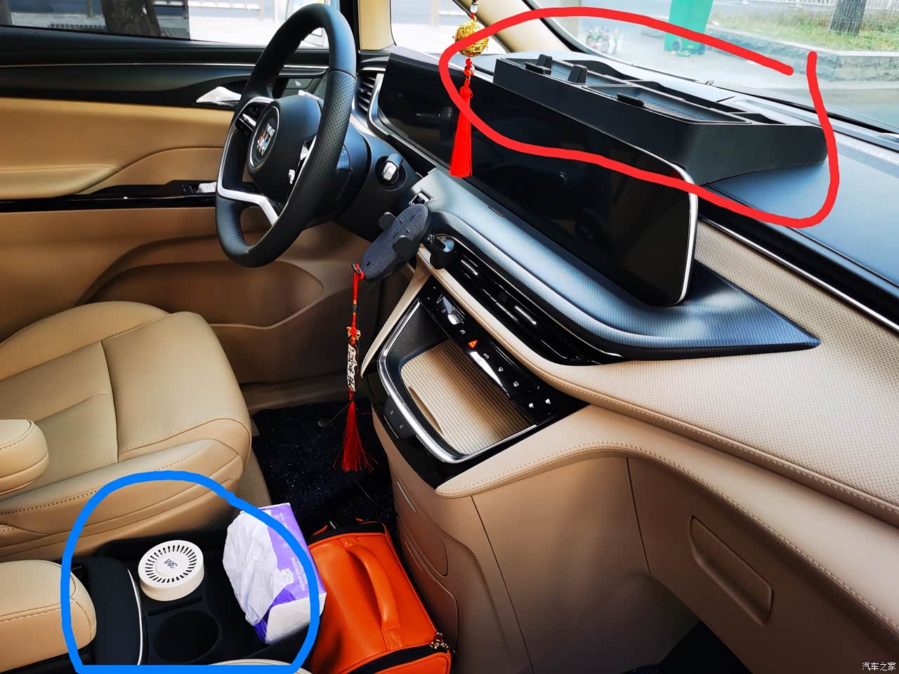 内饰确实不如陆尊,但凑合用吧~自己瞎折腾还扩展了下储物,红圈和后排储物箱其实不推荐,蓝圈推荐~但买都买了,也是四人使用,就用着吧~