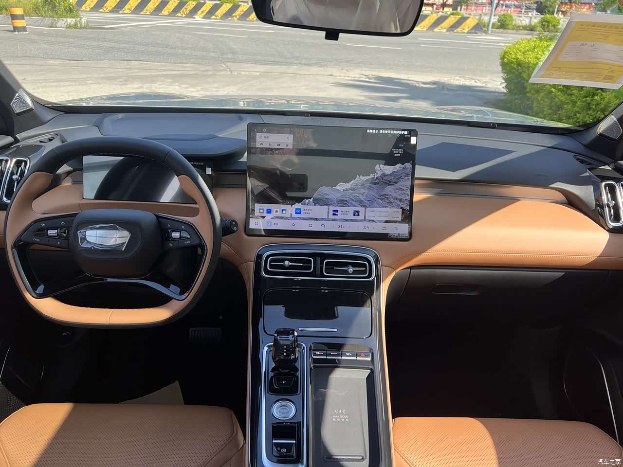 内饰科技感拉满,显示清晰,操作起来跟手机一样顺滑。仪表盘信息一目了然,开车时不用分心去看。座椅是皮质的,坐着柔软舒适,包裹性也不错,长途开车不会觉得腰酸背痛。我选的灰色内饰,耐脏又显质感,虽然部分地方是硬塑料,但做工还算精细,缝隙均匀,整体看着不廉价。