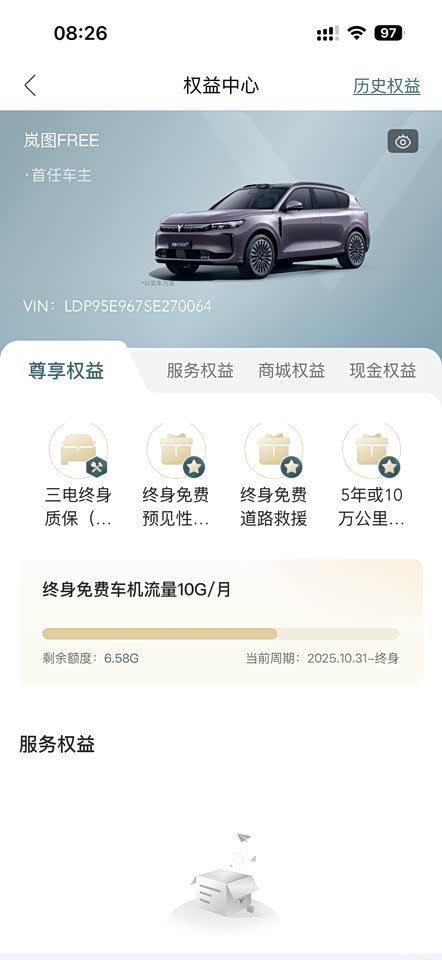 紫色外观搭配白色内饰,颜值超高,十分吸睛。 紫色车身颜色独特且富有韵味,如琉璃紫在阳光下有细闪的金属光泽,阴天或在地下车库时又呈现出低调的灰调,不同光线下呈现出不同的视觉效果,辨识度极高。车身线条流畅,搭配发光格栅与贯穿式灯带,科技感与时尚感拉满。 白色内饰则给人一种明亮、高级且奢华的感觉。车内大面积采用真皮材质包裹,触感柔软,搭配偏白色的木纹装饰,整体营造出温馨、居家的氛围。白色内饰视觉上柔和舒适,能让人在车内拥有愉悦的心情。 此外,官方的权益也很诱人:终身免费道路救援,终身免费三电质保,终身免费车机流量,整车质保5年10万公里,终身免费可预见性服务。之前会担心换电池成本太高,这下解决了我的后顾之忧。
