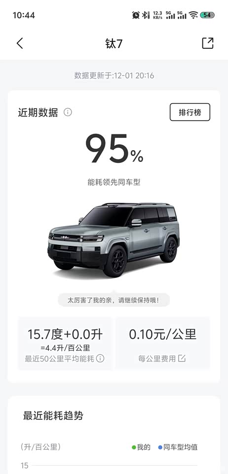 媳妇比较喜欢这种方盒子造型,看不上普通的SUV,就想要特别一点的外观,本来差点就提猛龙了,突然发现钛7要上市,就等了几天,真是等等党赢得胜利。真皮座椅,冰箱,零重力副驾,座椅通风按摩,最最关键的是后排放倒几乎纯平,最多有5°左右的斜坡,媳妇儿买了个延长板,直接秒变2m大床,我189的身高,腿伸的直直的。在市区用纯电跑,百公里16个电,对于方盒子来挺省的,我们经常跑高速去周边玩,高速开110,油耗大概就6个多不到7个,它还喝的92油,我是完全能接受的。两驱的动力也完全够用,前提是不越野玩水玩沙子。