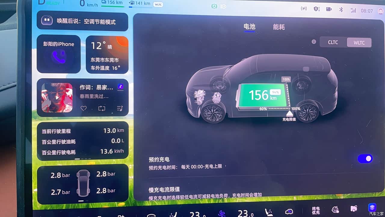 续航对我来说是非常够的,可能在广东的原因,一般纯电情况下能跑到190公里左右,而且都是上下班基本通勤,每天来回60公里,基本都是三天充一次电,而且小区都有充电桩,充电也非常方便,快充也用过,基本半个小时也能充满,表显续航wltc是166,基本能跑到190左右。