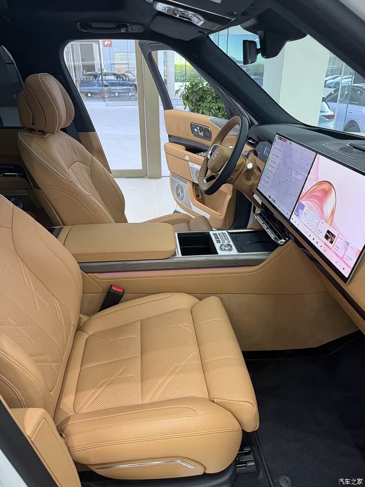 棕色内饰选用环保级NAPPA真皮材质,全车无异味,充分体现了高端车型对材质环保性的重视,这点我很喜欢。内饰豪华感足,采用环抱式布局,大面积软质皮革与木纹装饰搭配精致缝线,再结合中控台的水晶旋钮和门板上水晶LOGO装饰,豪华感扑面而来。另外车内还有很多物理按键,特别是门板上的各种座椅按键真的很方便。