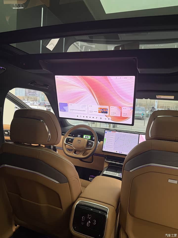 车内屏幕多、反应速度快,全液晶仪表、AR-HUD、中控双联屏组成的前排屏幕列阵,非常有科技感。芯片硬件很顶级,车机芯片是两颗8295、智驾芯片是2颗英伟达 Drive Thor-U,看的出来极氪9X这车确实挺豪的,芯片都是两颗两颗给。飞翼屏很有创意,镶嵌在车顶上面,又有一个轨道连接,可以调整远近距离和角度。第二排可取出的妙控屏操作便捷,能独立控制空调、座椅按摩等功能,提升了后排乘客的参与感。