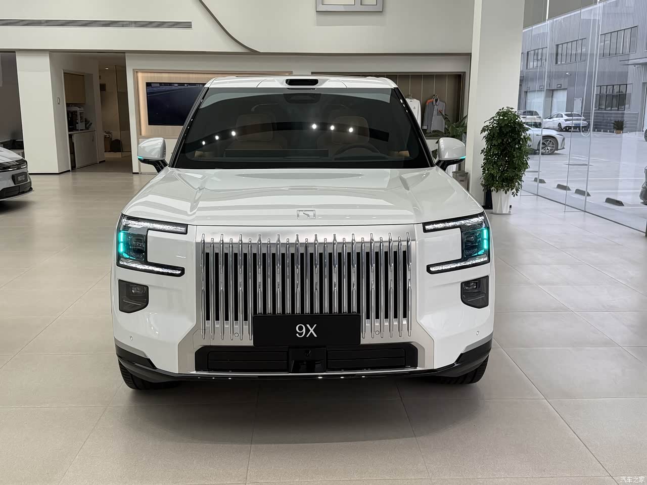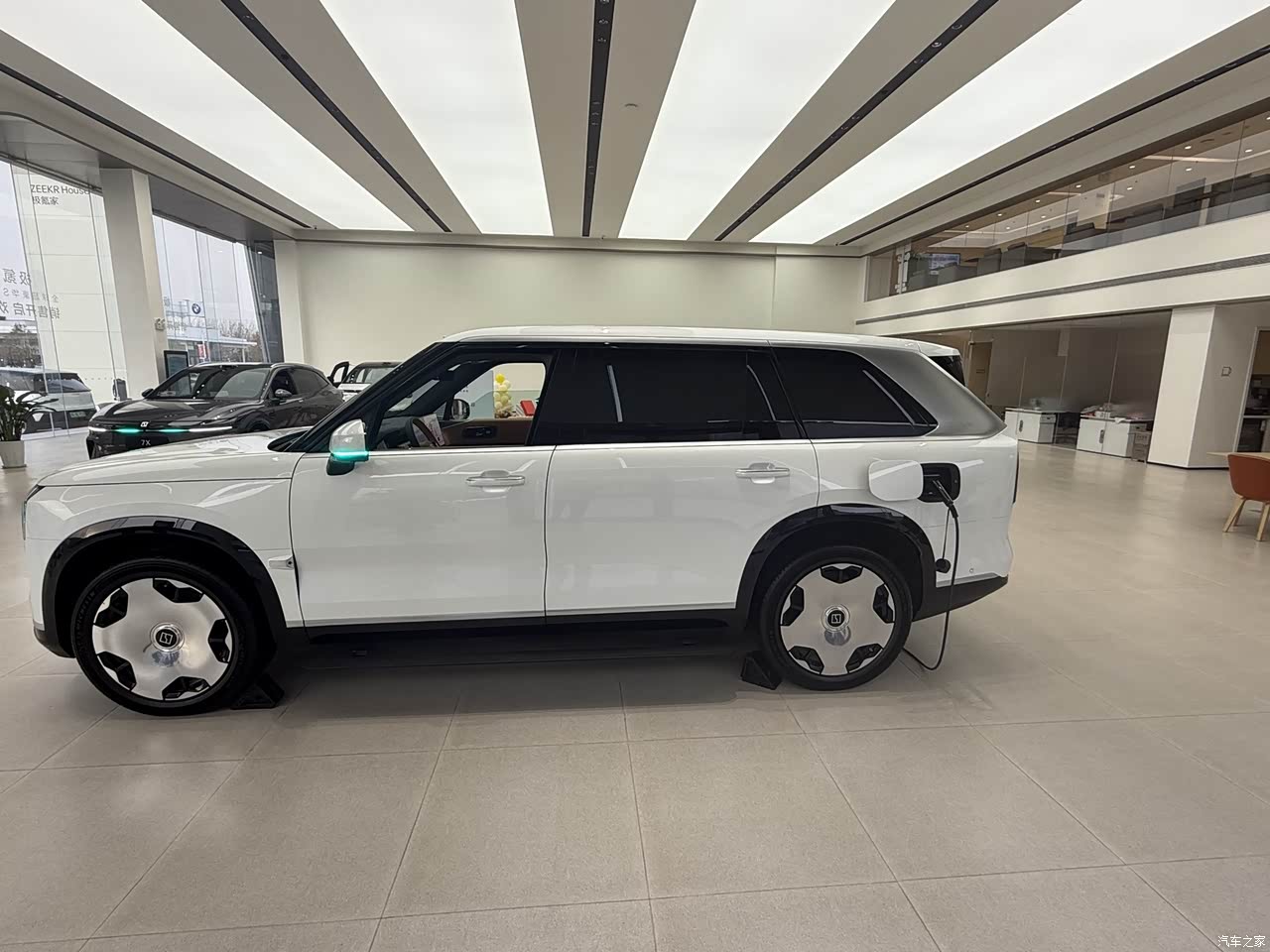 现在的SUV都是越做越大,但极氪9X的身板着实太大了,外观气场堪称震撼,特别是车头造型很震撼,有劳斯莱斯的气场。但ABC 柱的又做了黑化处理,整体看着没那么单调,另外22 英寸镜面锻造轮毂,辐条设计精致且富有力量感
