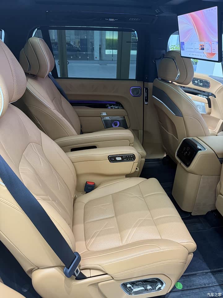 空间非常大,基于3169mm的超大轴距,就连相对最小的第三排空间坐成年男性也没问题真正实现了6座每一排都均衡舒适。第二排行政座椅功能丰富,有大沙发模式、躺椅模式、按摩椅模式、对座模式,几种模式,而且空间巨大。销售给我展示了对坐模式,180 度旋转实现与第三排的面对面交流,这个我还真是第一次见,后备箱也很大,是天地门设计,还可以二三排座椅按比例放倒,变成更大的空间。车内储物空间多。
