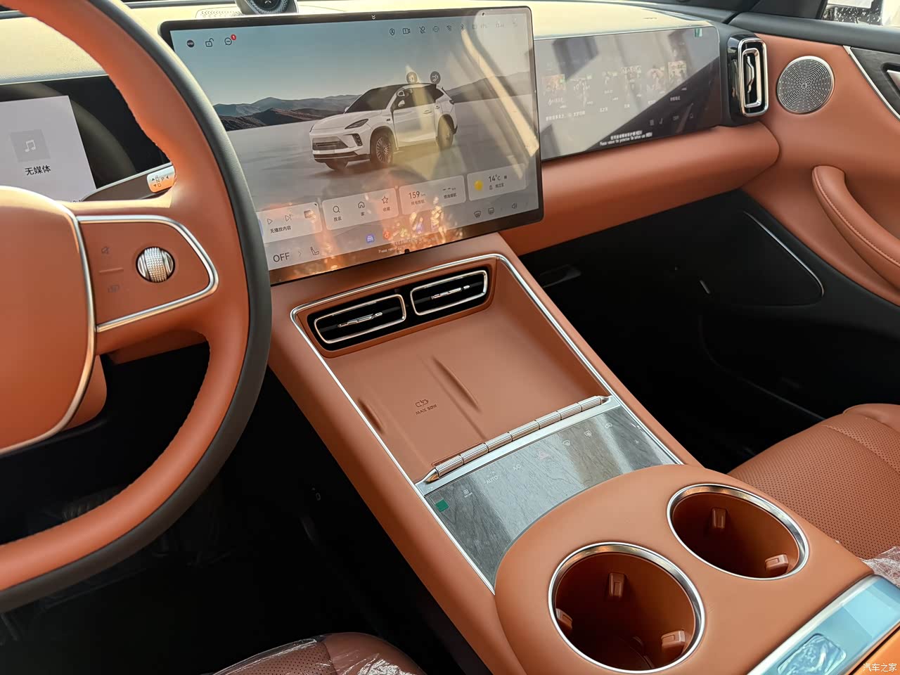内饰质感在线,大面积软质材料包裹,搭配银色饰条点缀,简约又不失格调。三联屏设计太吸睛,12.3 英寸仪表 + 15.6 英寸中控 + 12.3 英寸副驾屏,视觉冲击力强,车机反应迅速,切换界面、打开应用都没有延迟。