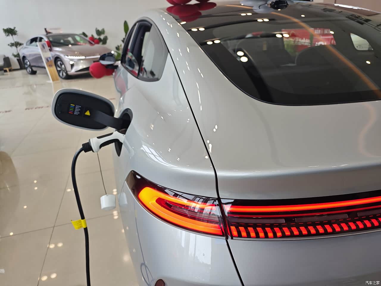 第一眼的感觉就是前脸部分比较扁和短,给我以往关注的车型棱角分明的线条(奕派007,银河e8)对比显得有点别具风格,可能是照片呈现出来的二维平面的视觉效果吧。怪怪的,一时有点难以接受(学它大哥阿维塔搞抽象是吧……)。直到在展厅看到实车后,整车的气质很显大气,舒展且强势。加上银色这种具有科技、个性、时尚的颜色。比在手机照片和视频呈现出来的漂亮多了。