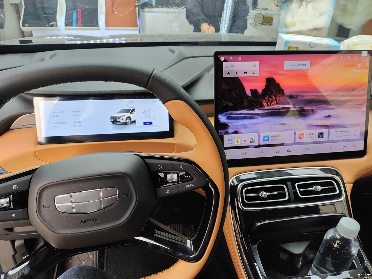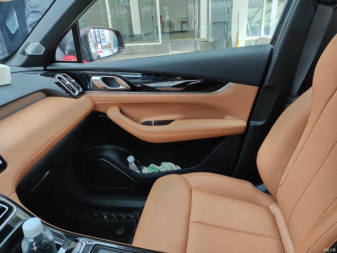 买黑色博越L的车友们估计大家都选择了琥珀色吧,太显车高级了,十来万的车,朋友看了都说这可一点都不像是十来万的车,车内饰的设计包括配色深得我心,这个色也亮眼,方向盘皮质材质开车手感非常不错的,包括车座都是软皮质坐上也舒服,