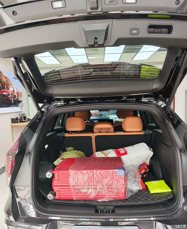 就说这空间够不够大,五个大人出行都不觉挤,SUV不比小轿车,全家出行还是要首选SUV,大五座,前面位置就没什么好说的,因为可以调,就看后面的了,后面座椅中间那块基本也是平的,做五个人也是松松的,大五座也不挤,还有后备箱也特别能装,有图有出现,感觉装四五个行李箱都不成问题。能装!巨能装!