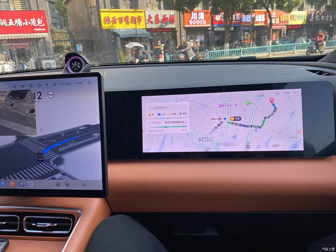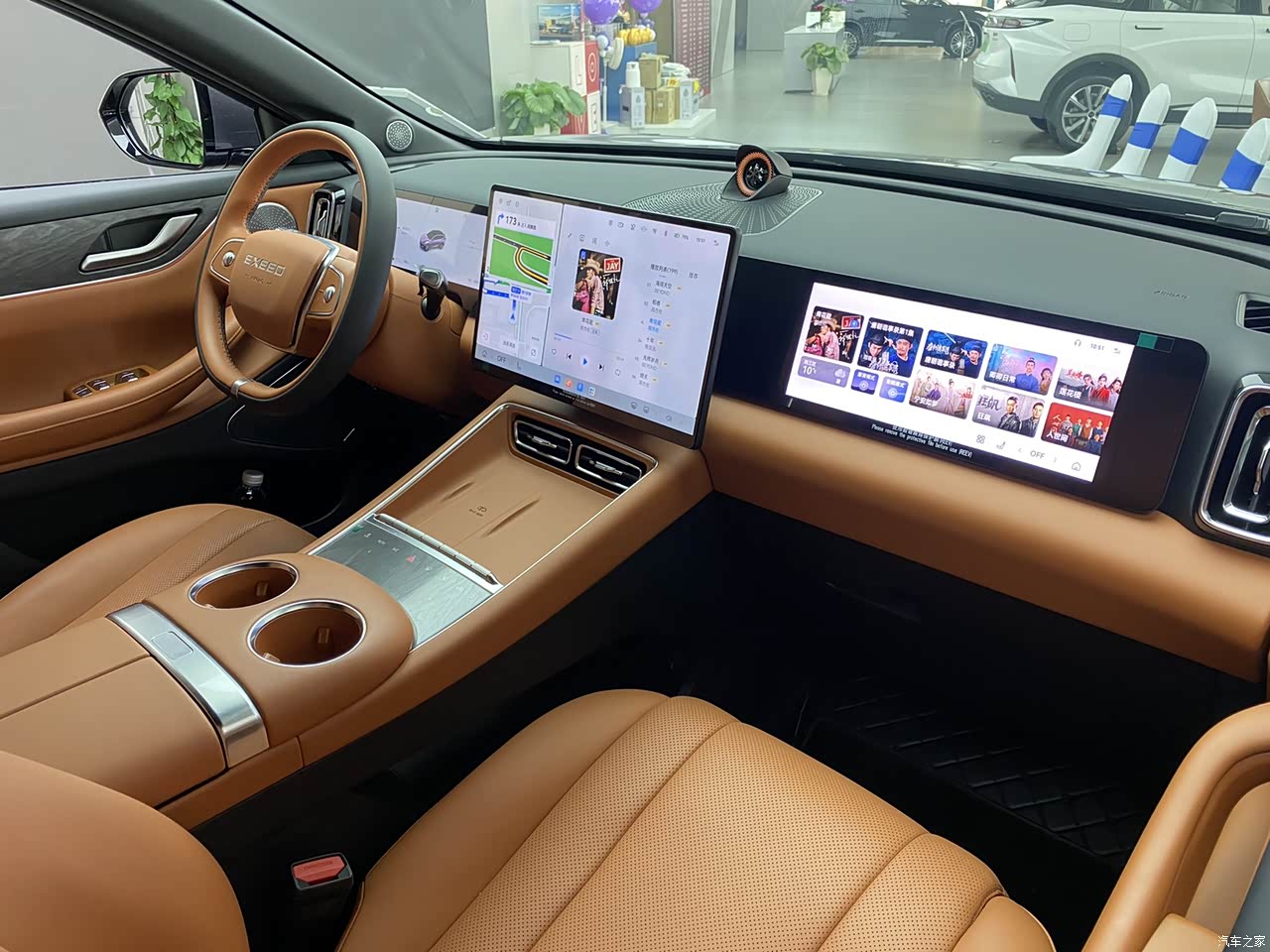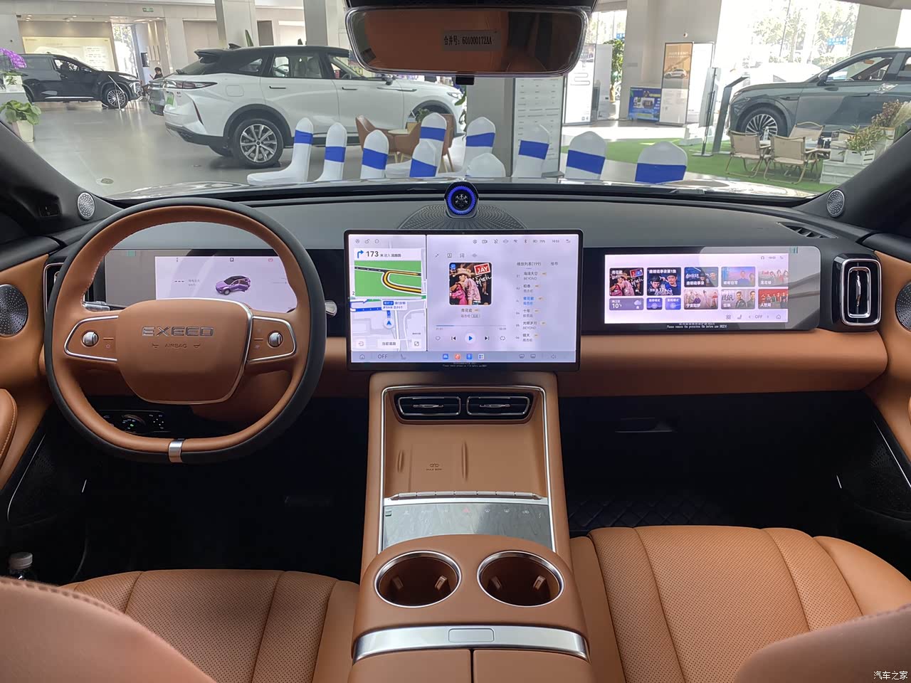 内饰采用的黑色的顶棚和橙色的座椅以及中控,这两个颜色组合在一起颇有一番奢华的感觉。当然谈到内饰不得不说这次全新的三屏设计,副驾的娱乐屏不管是显示效果还是功能设计也都符合实际驾驶需要!也不会干扰到主驾 全新的中控大屏搭载的8255芯片让整个车机的流畅度大大提高,几乎感觉不到卡顿,并且搭载了21个扬声器伯牙之音,随便来了一首《泡沫》,清澈的人声加上静谧的空间,很有一番享受。音质大有提升。另外三个屏幕之间的交互也有三指飞屏的操作,很方便,副驾的导航和娱乐都可以通过这个手势进行实现。