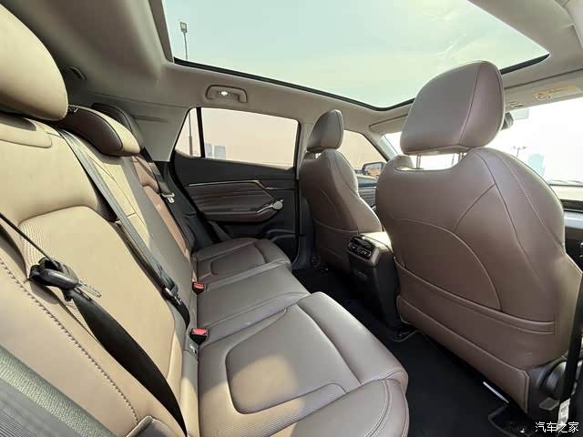 空间满分,越级的表现,前排杯架包括中控下方储物盒都可以放手机,中央扶手箱空间也比较大,我一米八的身高,头部空间和腿部空间都很宽裕!我前排调到我舒服的驾驶姿势,后排我老婆试了一下,都可以翘二郎腿了,老婆很满意。
