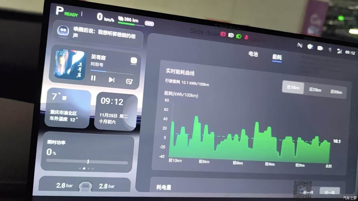 内饰质感很好,很有科技感,大屏显示信息非常丰富,语音交互也很灵敏,基本上“动口不动手”。