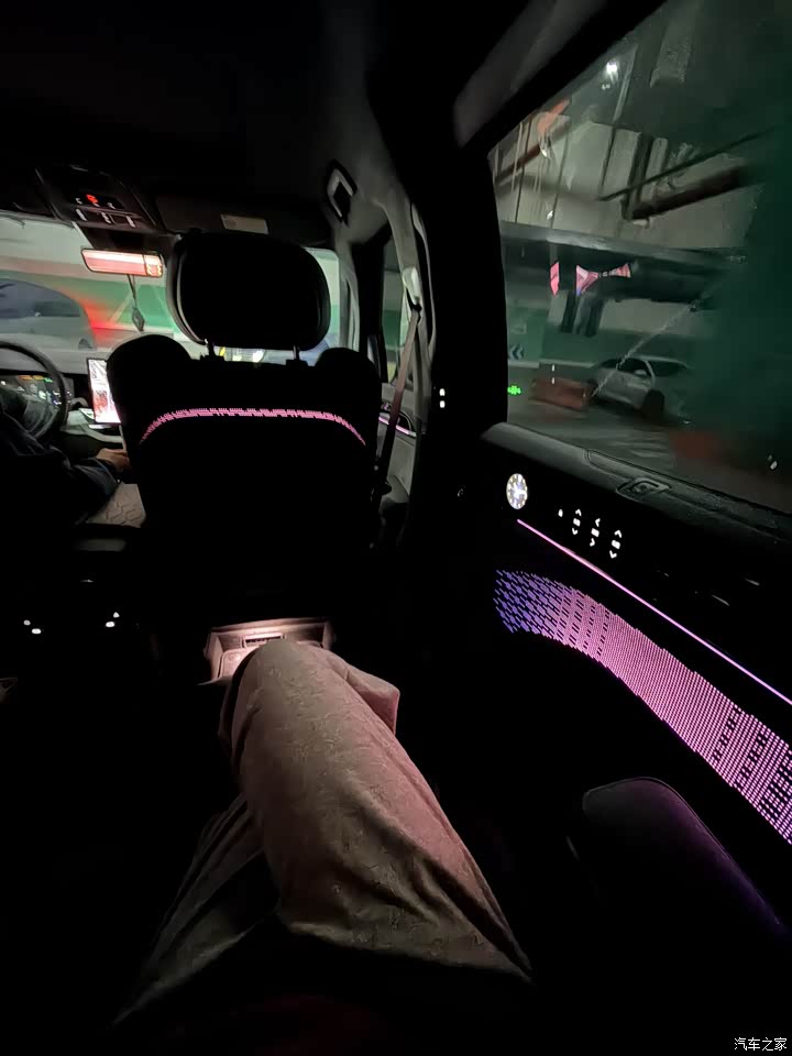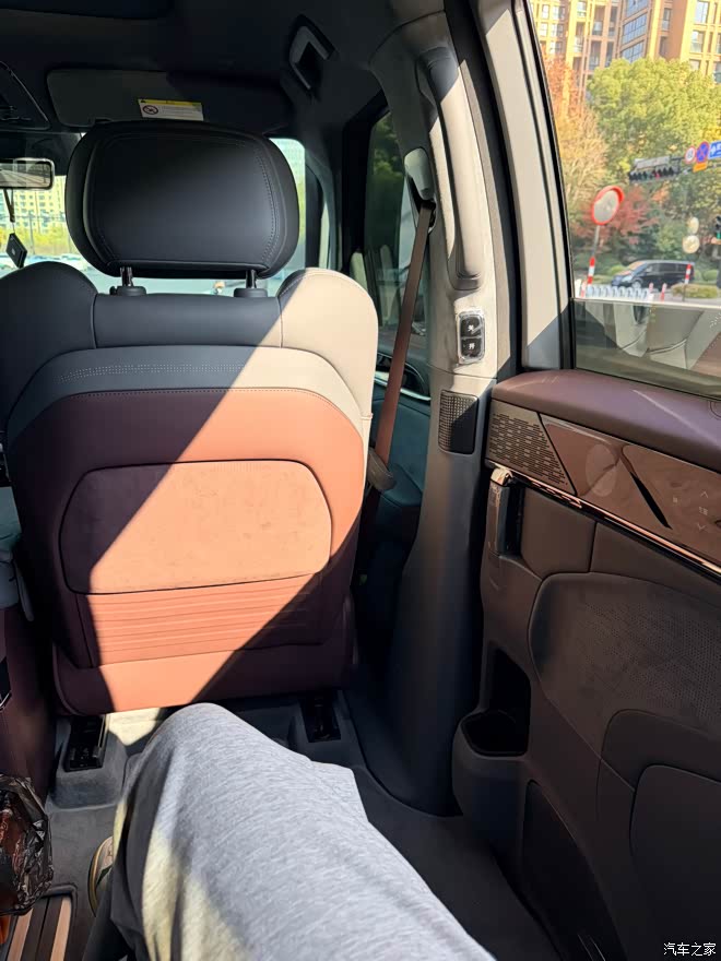 灰紫内饰相比纯黑少了商务的沉闷,多了份独特质感,阳光下还能透出细腻光泽。二排座椅的包裹感和支撑性都很足,按摩和通风功能长途出行超受用,吸顶屏和音响也让车内氛围更惬意,不管是家人休闲还是客户接待,都能兼顾舒适与格调。