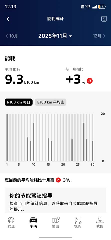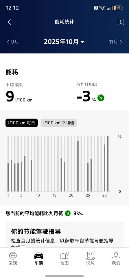 10月份假期出去玩,高速多一点,APP显示平均油耗9个油,11月份基本市区开,APP显示平均油耗9.3个油(错开了早晚高峰,没怎么堵过车),粗算了一下,纯高速应该是8.5个左右,北京市区早晚高峰时间段13个左右,堵车和不堵车区别比较大。