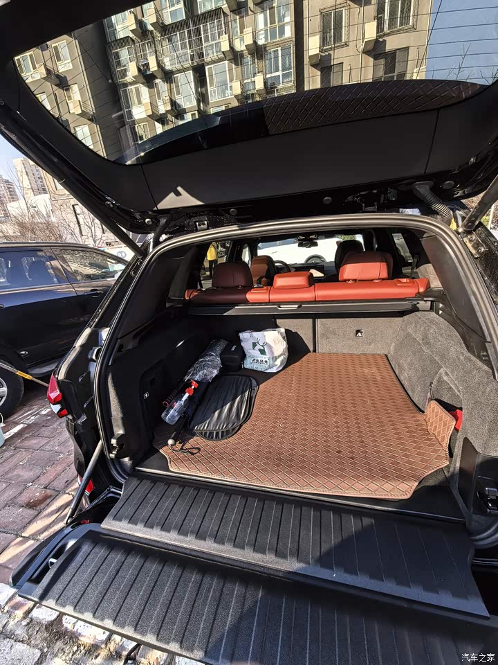 X5加长以后,空间是真的够用了,两个孩子(一个8岁,一个11岁)坐在后排,嬉戏打闹施展的开,三个大人也没压力,没有局促的感觉,后备箱没有备胎,盖板底下还能放一部分东西,整个后备箱空间只要不当货拉拉用,基本没问题。